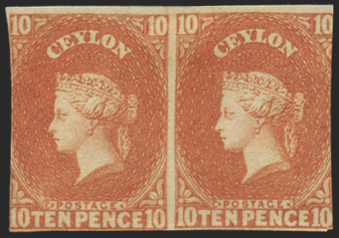 Ceylon 1857-59 10d dull vermilion, imperforate HORIZONTAL PAIR, SG9.
