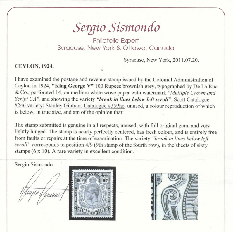Accompanied by a Sismondo Certificate of Authenticity (2011) incorrectly describes the shade as 'brownish grey', but gives the correct SG number.