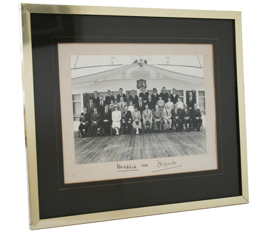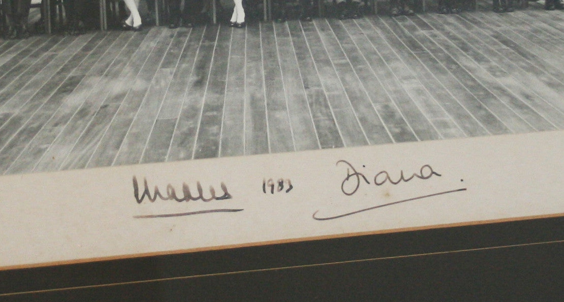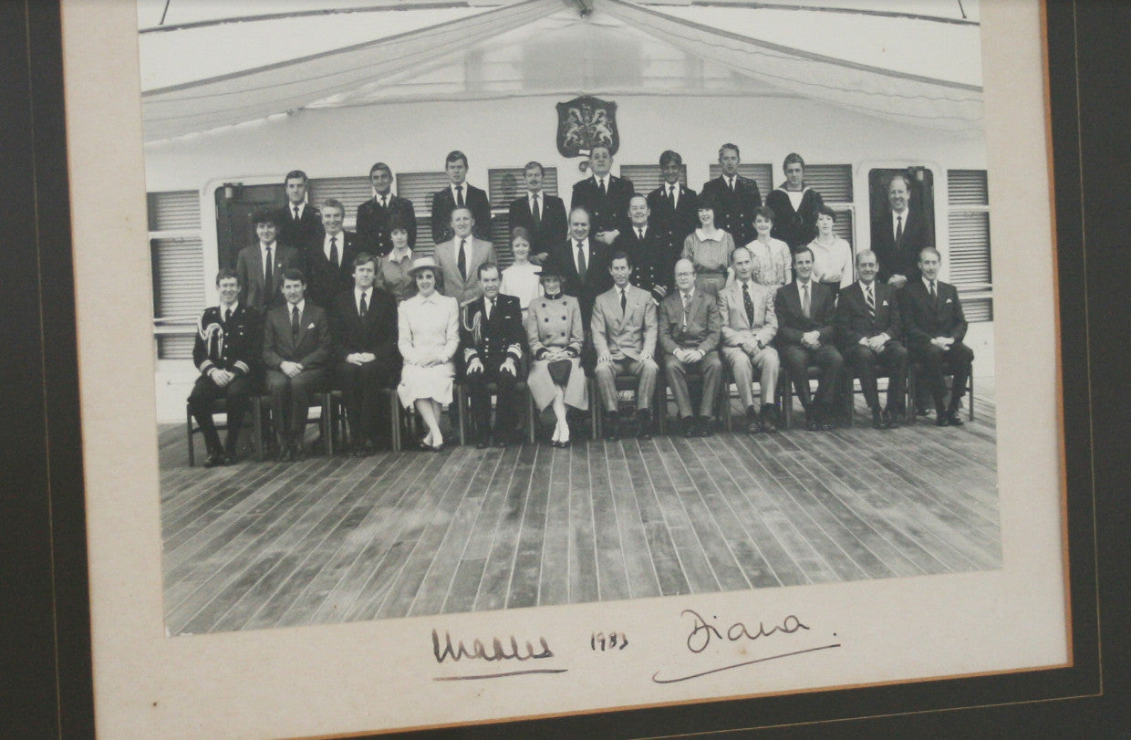 Prince Charles and Princess Diana signed HMS Britannia photo