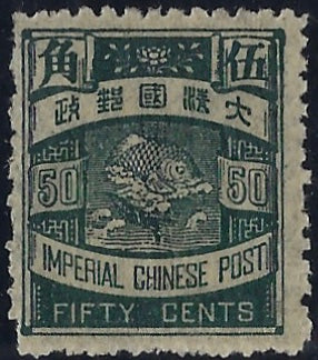 This stamp, depicting a Carp, was from the first issues to be inscribed “Imperial Chinese Post”.