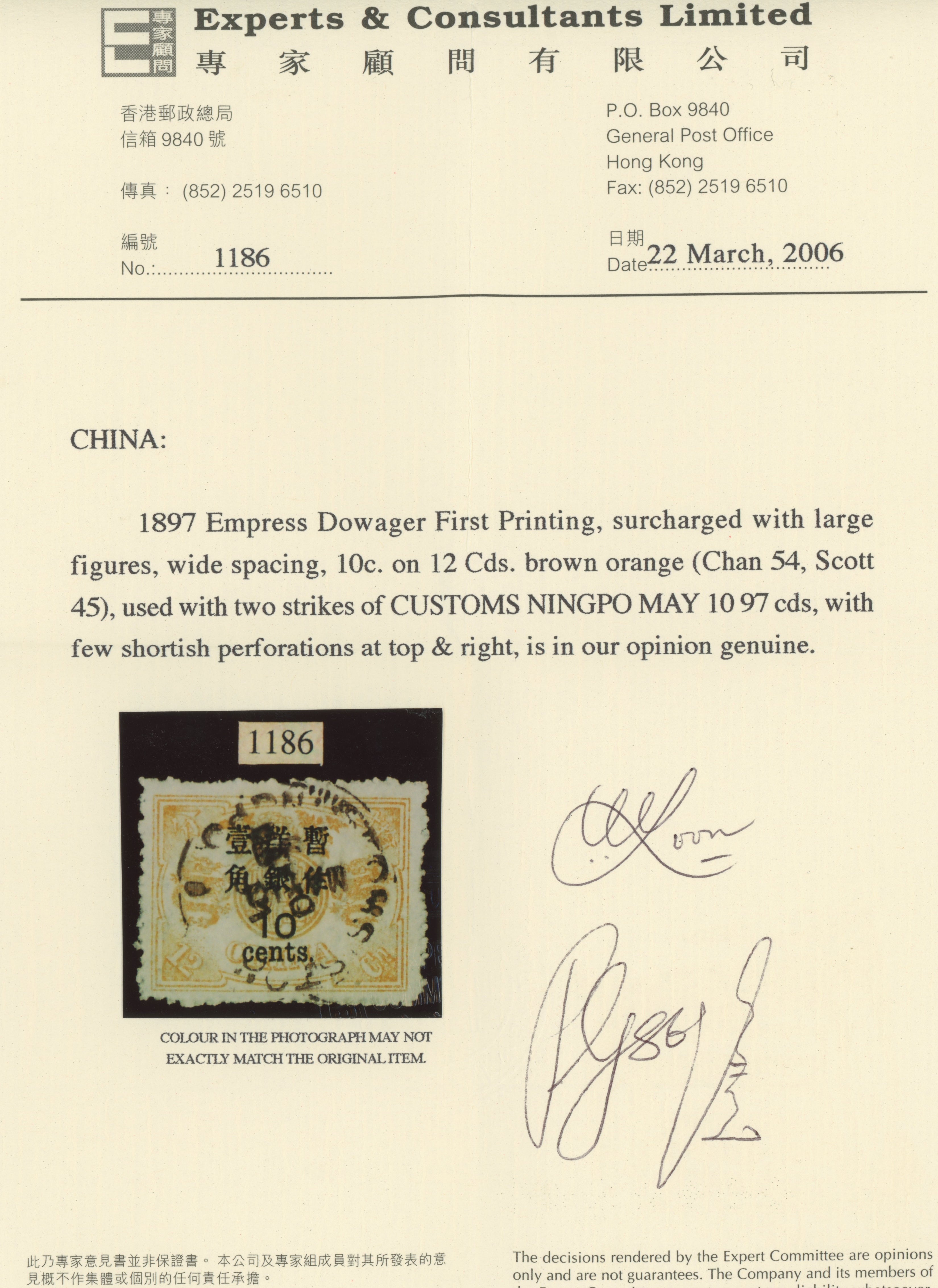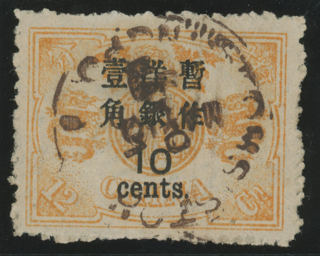 China 1897 10c on 12ca brown-orange (first printing), large figure surcharge on Dowager Empress, SG55