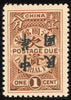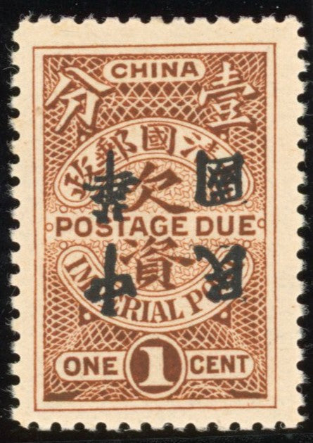 China 1912 1c brown Postage Due with Waterlow Republic error, overprint inverted, SGD235a.