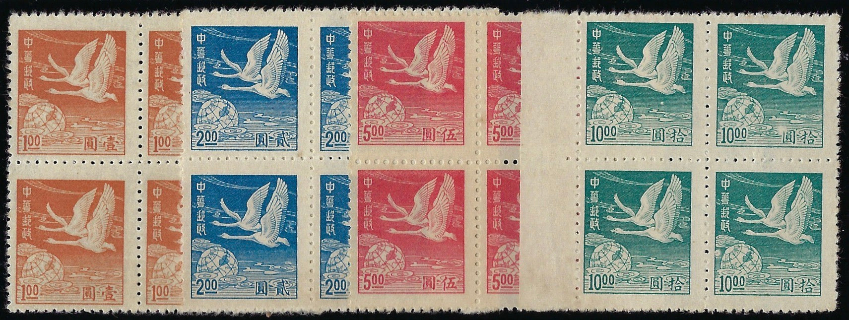 China 1949 Tundra Swans "Flying Geese" set of 4 to $10 blue green, SG1344/47