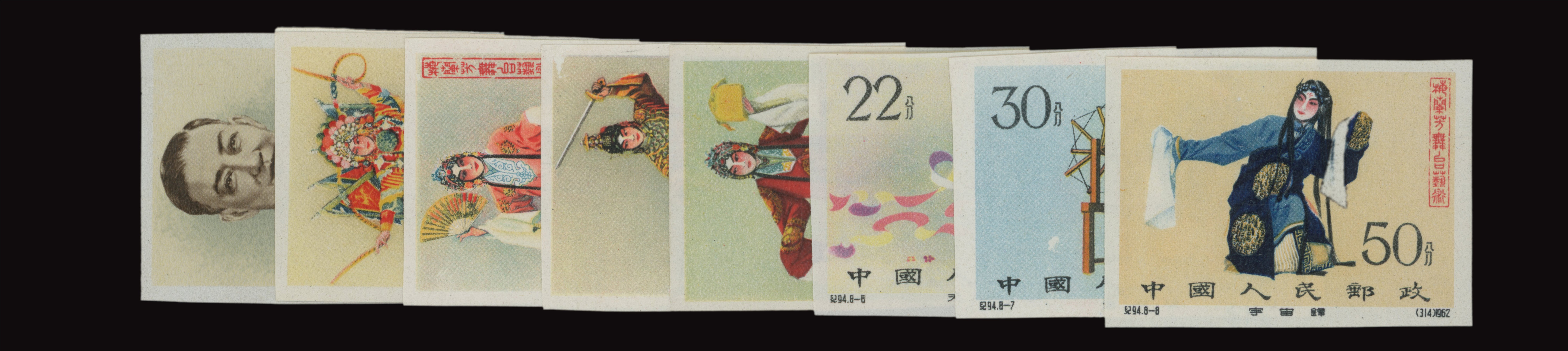 China 1962 People's Republic China (PRC) general issues Stage Art of Mei Lan-fang imperforate set of 8 to 50f, SG2037i/44i.