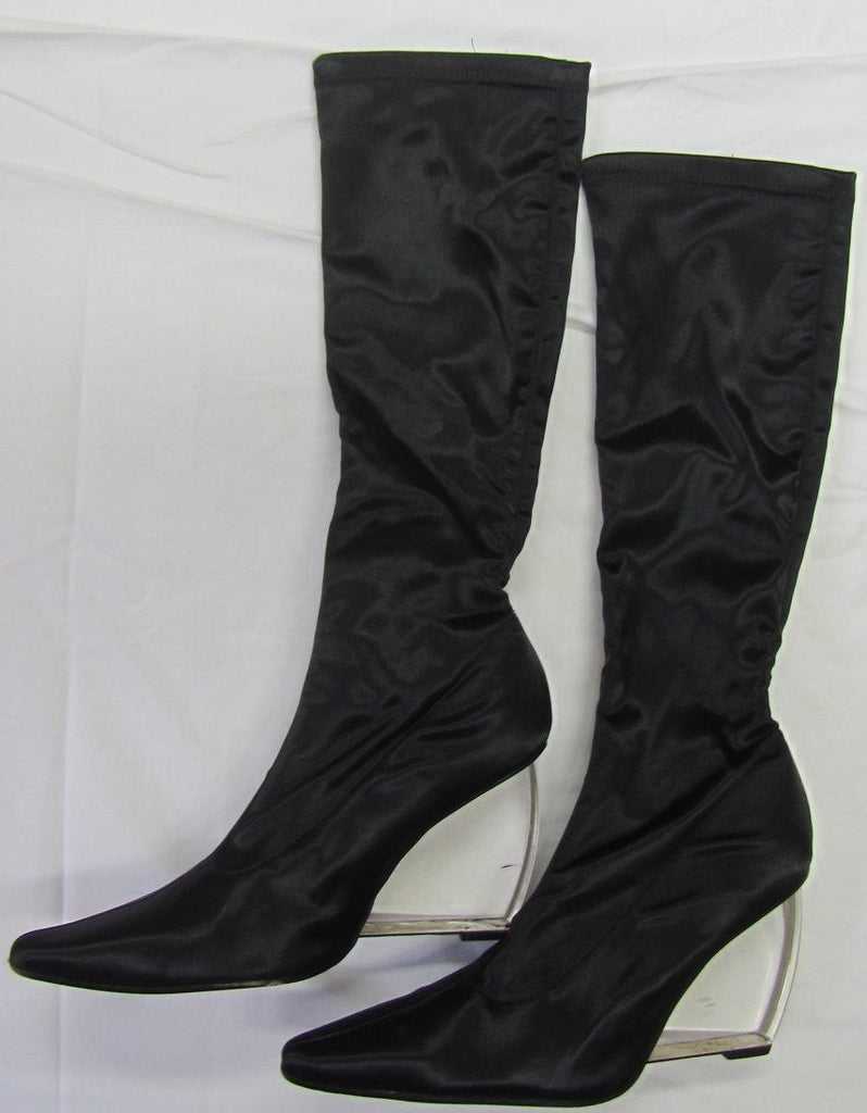 This is a pair of Christina Aguilera owned and stage-worn elasticated, satin boots.