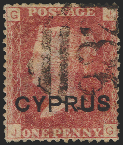 Cyprus 1880 1d red, plate 220, lettered 'JG', SG2.