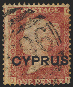 Cyprus 1880 1d red, plate 181, lettered 'OK', SG2.