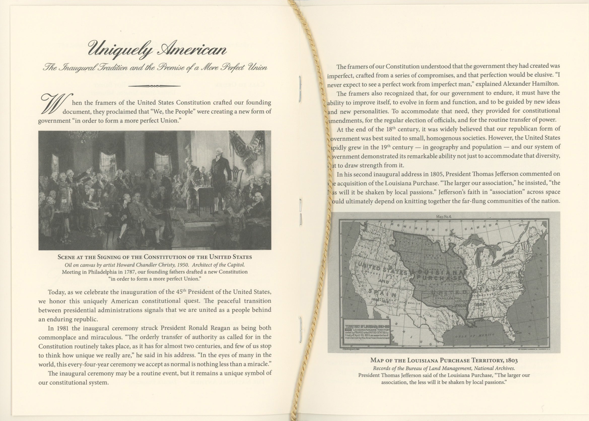 - A large Donald Trump autograph in gold on a 2017 presidential Inauguration Ceremonies Program