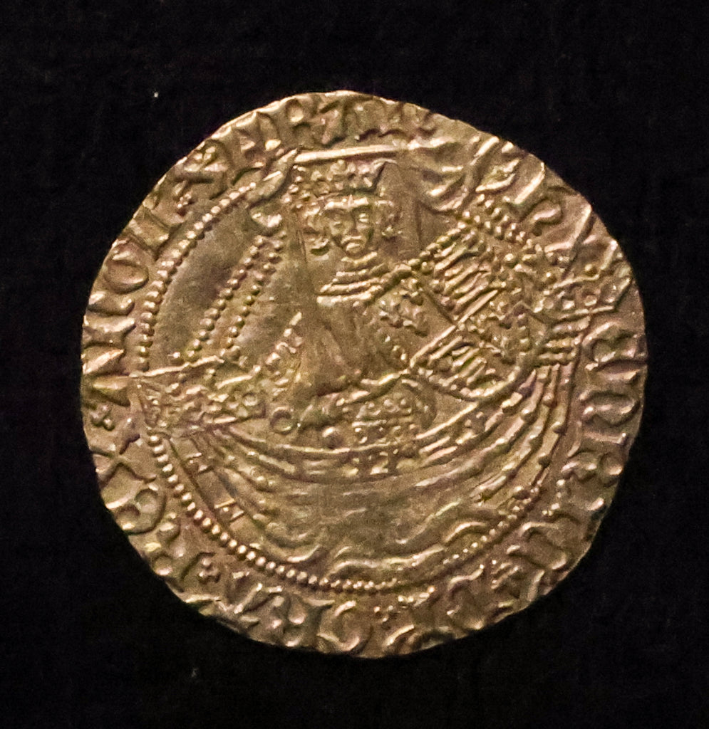Obverse: King in ship holding shield of Royal Arms and sword, annulet by sword arm, lis after name, trefoil stops, ‘HENRIC’ DI’ GRA’ REX ANGL’ Z FRAN _ h’.