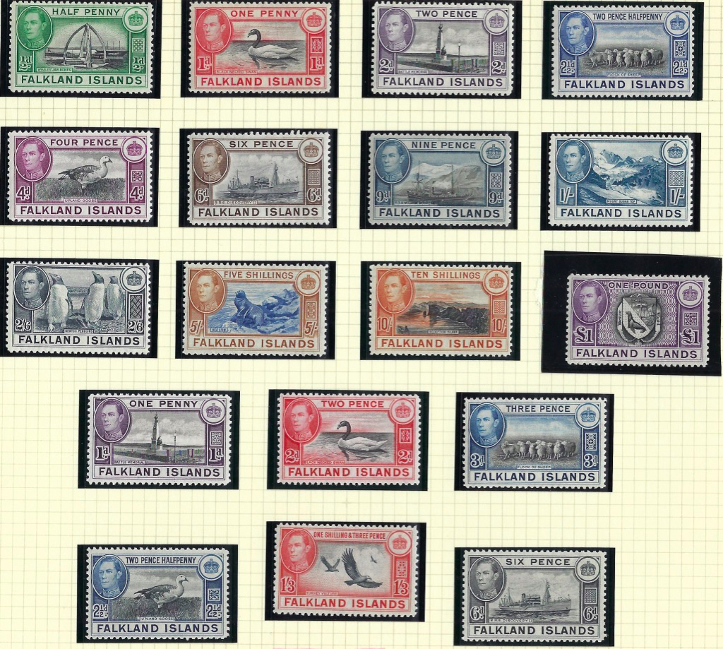 Falkland Islands 1938 (3 Jan) set of 18 to £1 black and violet, SG146/63.
