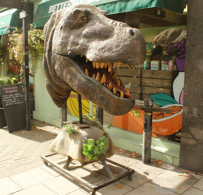 A stunning life-size fibreglass T-Rex dinosaur head.