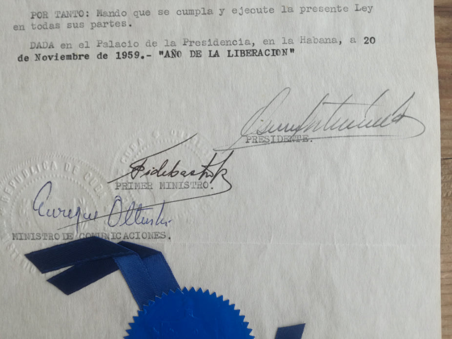 The decree is dated 20 November 1959 - just 11 months after Castro seized power.
