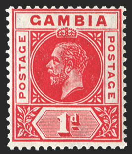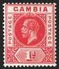 Gambia 1921-22 1d carmine-red, script watermark, VARIETY WATERMARK REVERSED, SG109x.