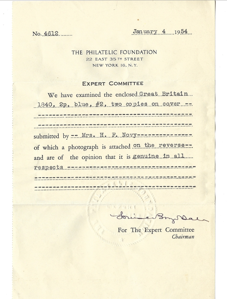 Accompanied with a 1954 Philatelic Foundation of New York (PF) certificate of authenticity.