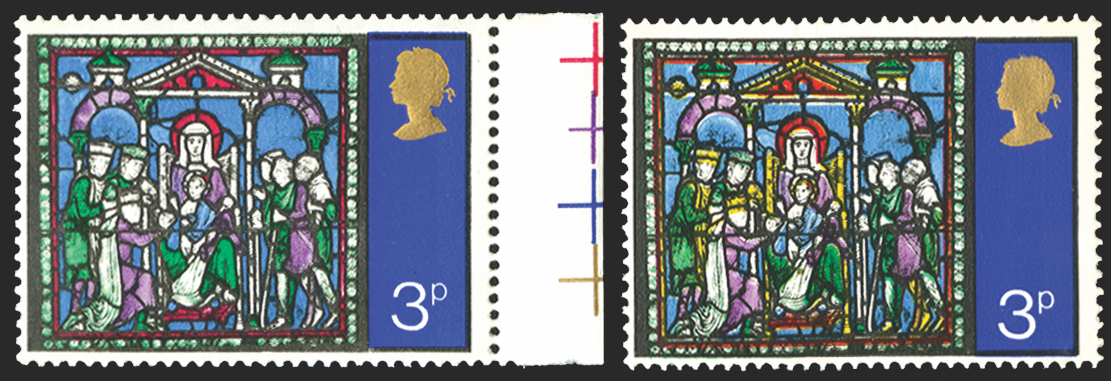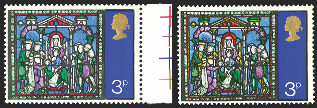 Very fine unmounted mint, with full original gum, right hand marginal example with Lemon (window panels) omitted. Offered with normal for comparison.