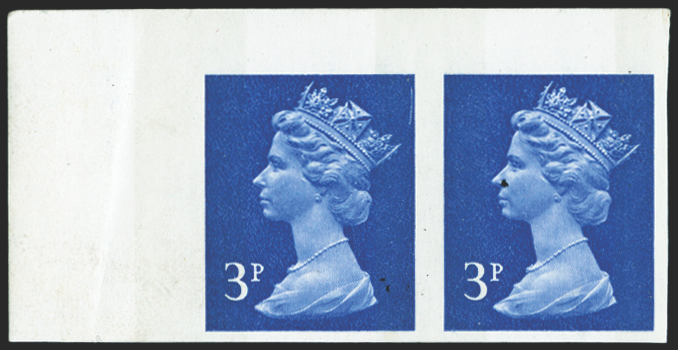 A very scarce imperforate Machin pair, particularly in positional form and in such pristine condition.