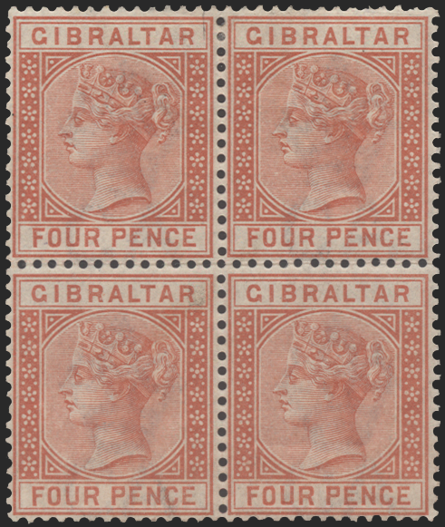Gibraltar 1886-87 4d orange-brown, block of 4, SG12.