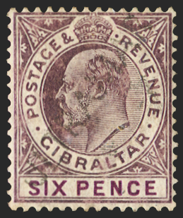 GIBRALTAR 1906-12 6d dull and bright purple Specimen, SG70