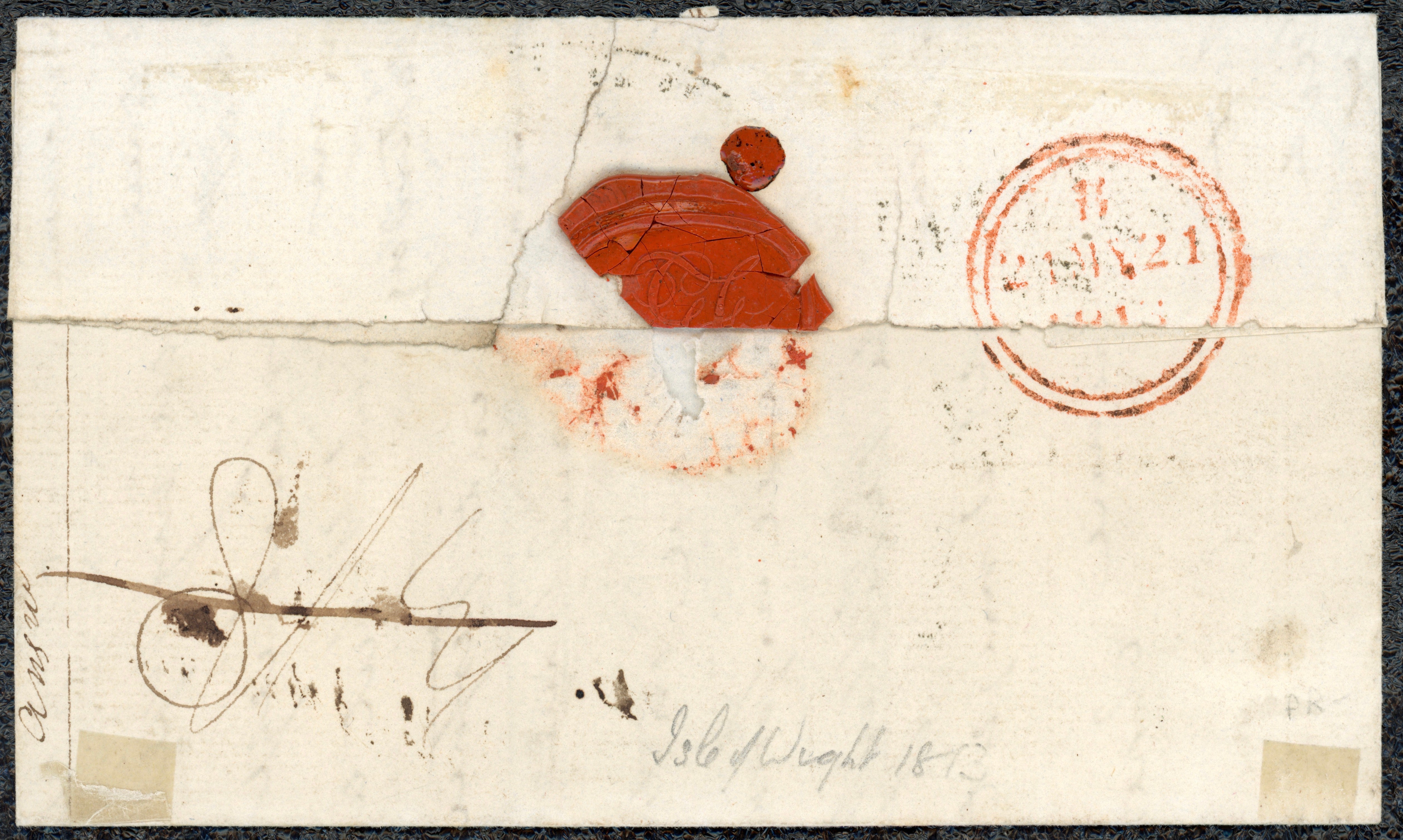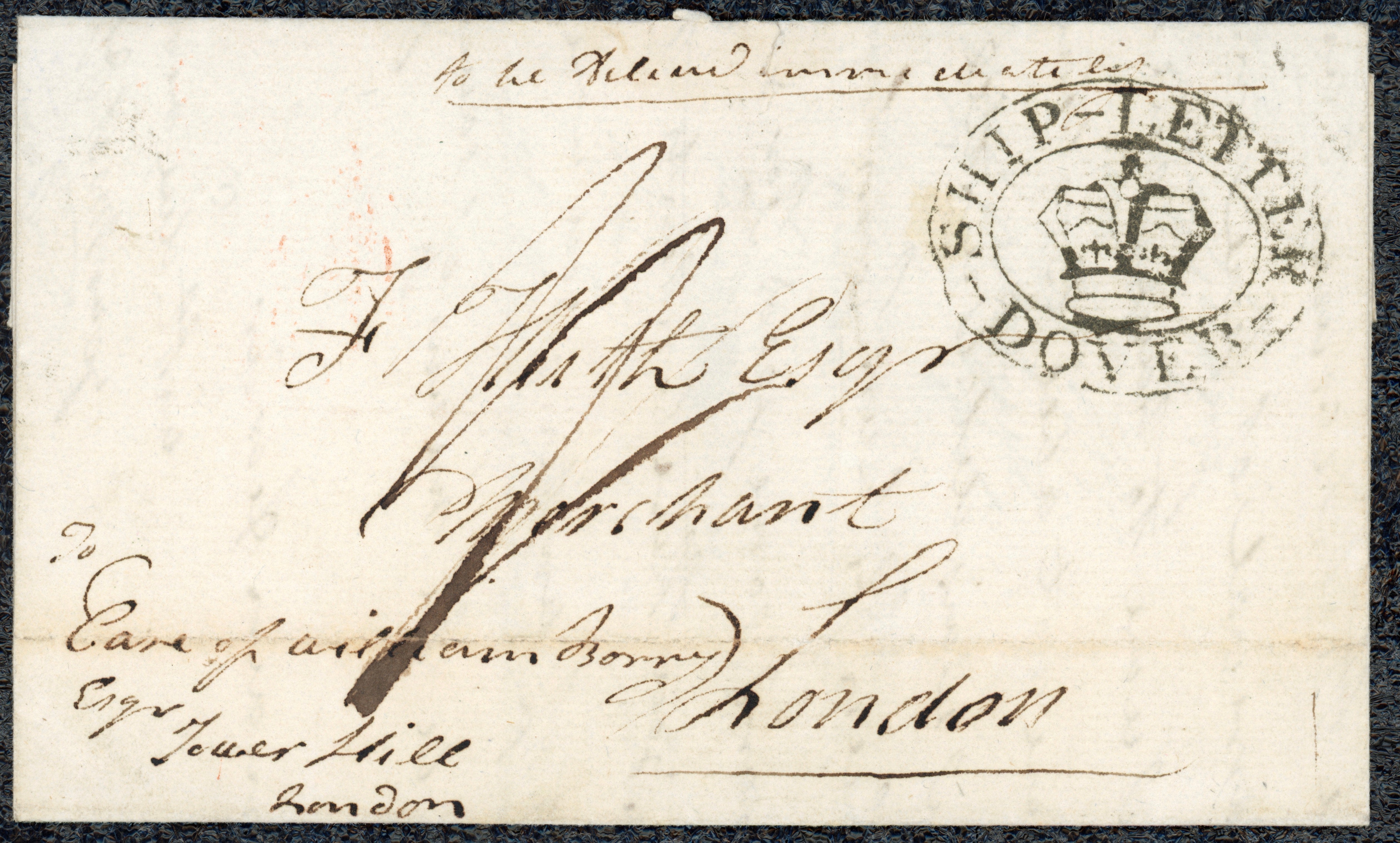 Great Britain 1813 Entire Ship Letter to London headed "Flying Fish off the Isle of Wight on Wednesday 19th May at 7pm 1813". Showing a very fine oval framed 'SHIP-LETTER/CROWN/DOVER', ROBS S8.