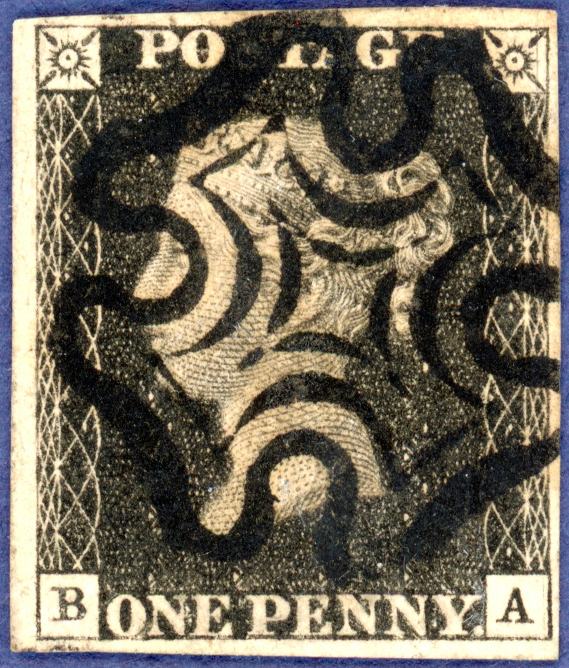 A very fine used close to large four margin example lettered 'BA', neatly cancelled by a crisp black London "broken points" Maltese Cross.
