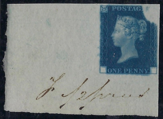 Great Britain 1840 1d Deep blue 'Rainbow trial' State 3(a), SG DP20.