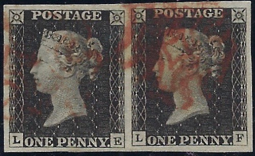 A scarce and attractive multiple of the first printing plate of the world's first stamp.