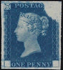 A very fine four margin imperforate example printed in deep blue on white wove paper.