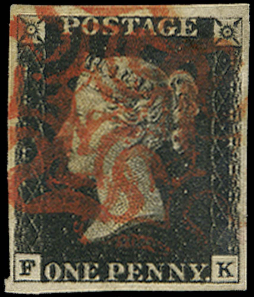 A very fine used good to large four margin example lettered 'FK', neatly cancelled by red Maltese Cross.
