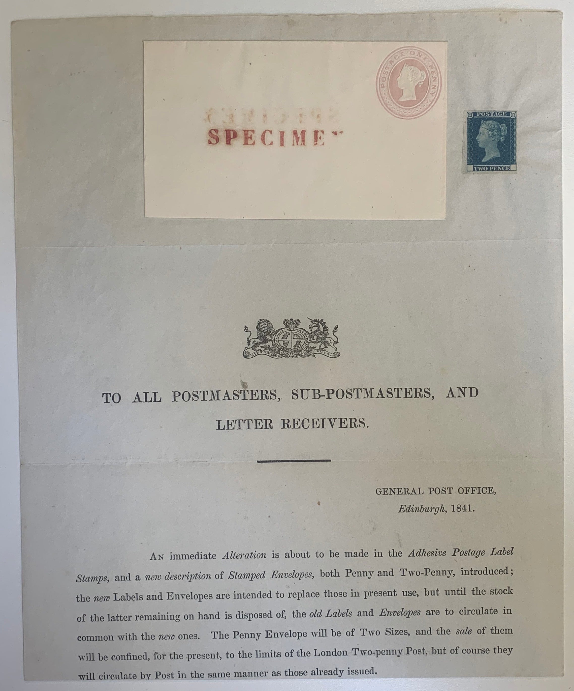 Great Britain 1841 No3 Postal Notice, SGPN3var.
