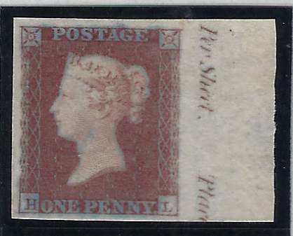 A very fine and fresh unused four margin imperforate imprimatur lettered HL with full deckle edge selvage at right and part sheet inscription.