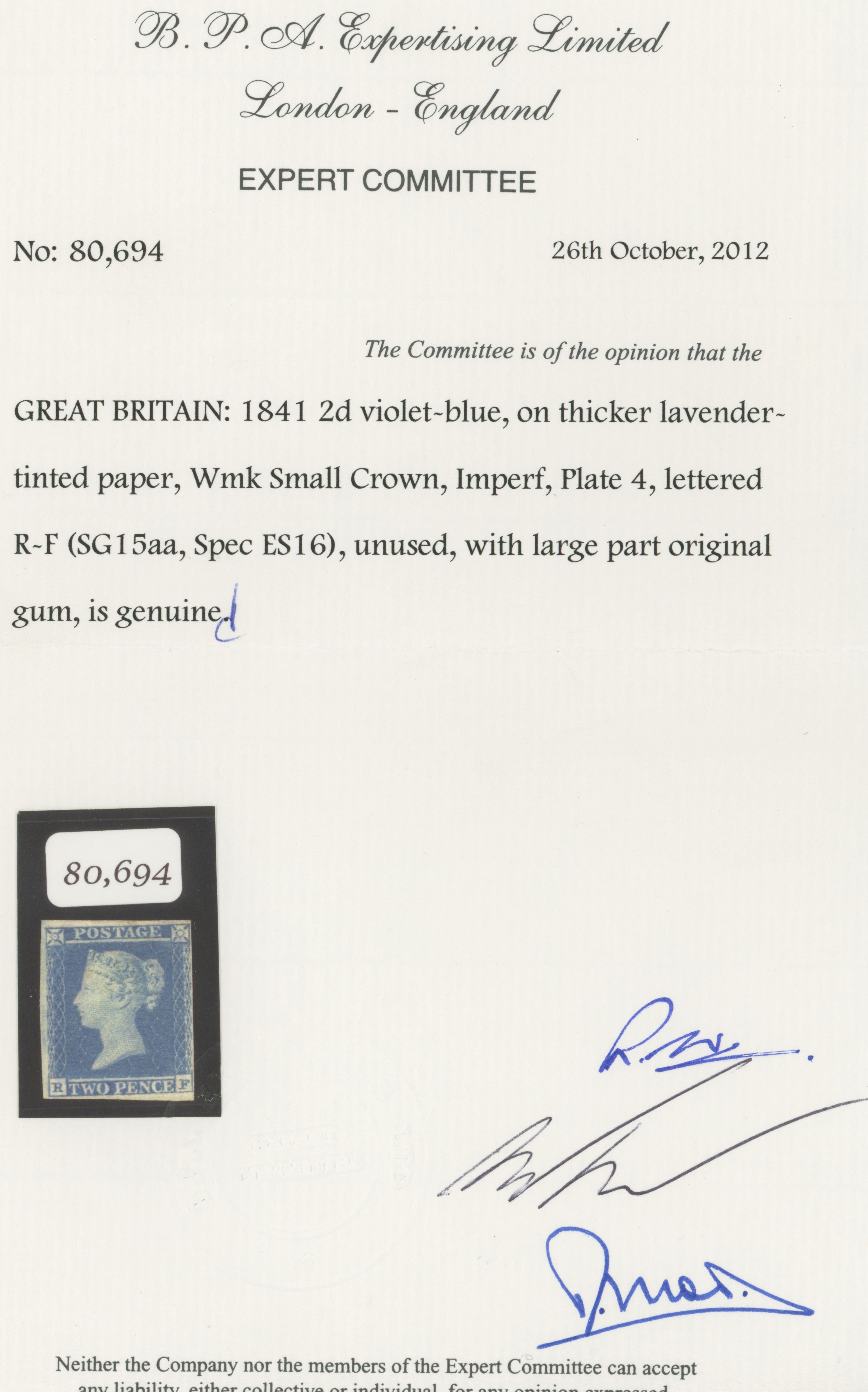 Accompanied with a 2012 British Philatelic Association (BPA) Certificate of Authenticity.