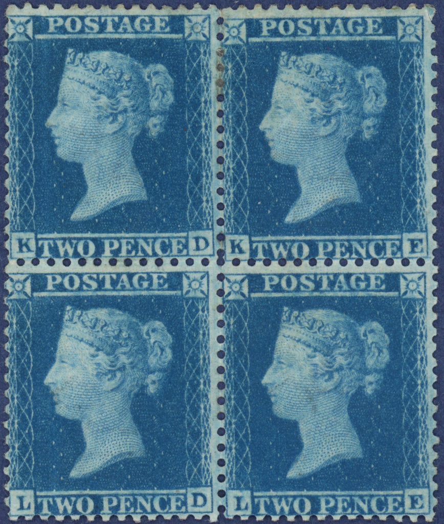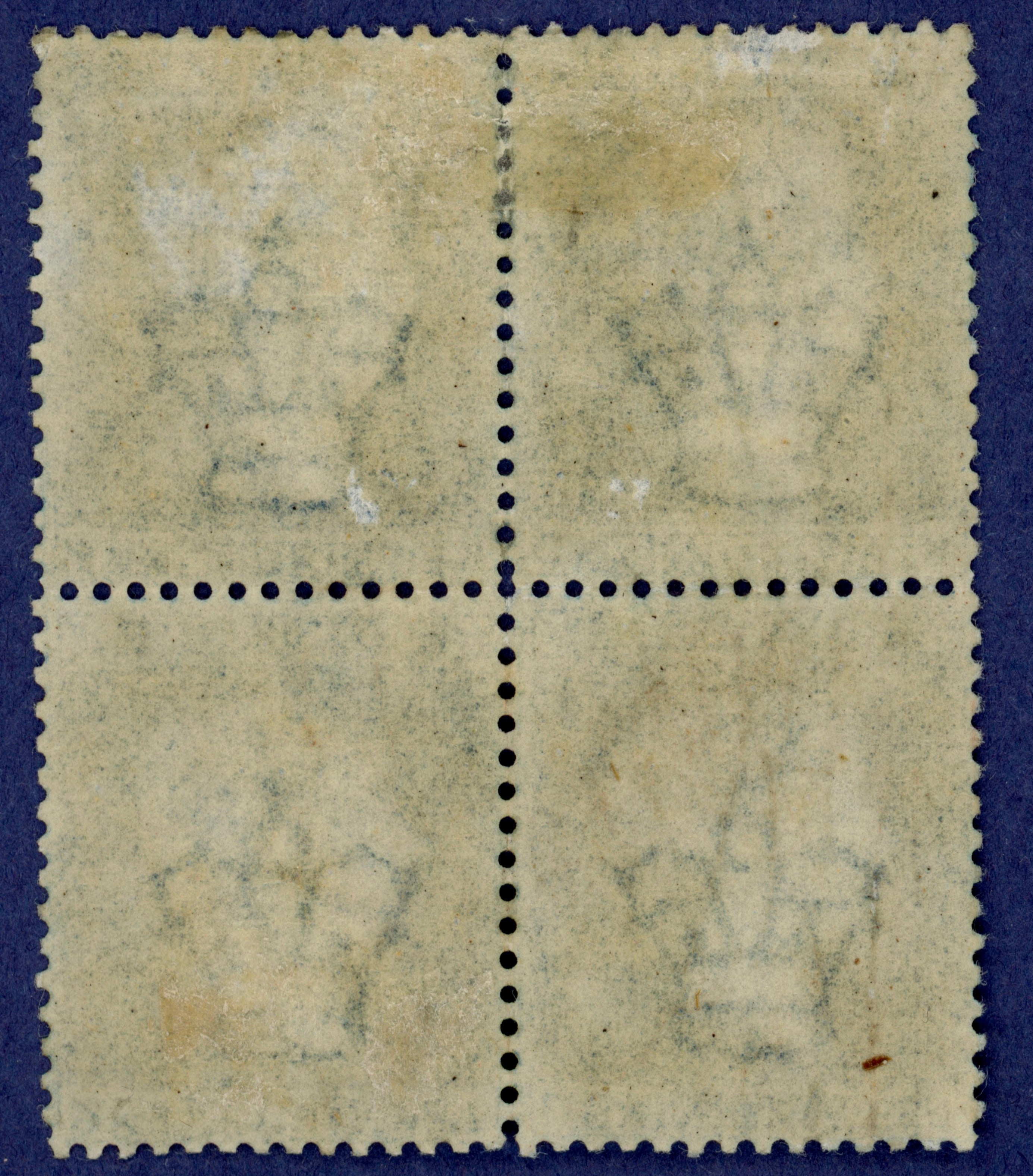 A very fine unused block of four lettered 'KD-LE' with original gum. Tiny gum thin at top of KD, nevertheless an exceptionally well centred and fresh block of four.