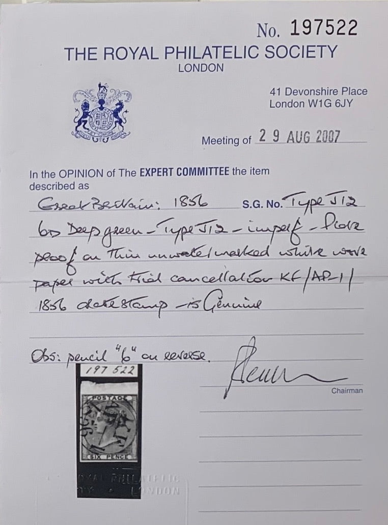 Accompanied with a 2007 Royal Philatelic Society (RPS) certificate of authenticity.