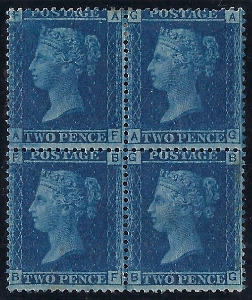 Very fine unused large part original gum block of four lettered AF-BG in a wonderful deep colour. A lovely multiple from this rare printing plate.