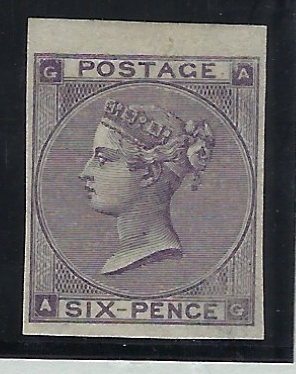 A very fine unused top marginal imperforate example with original gum, lettered AG with watermark upright.
