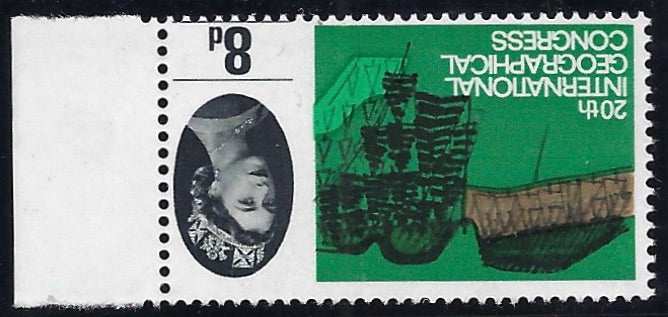 Great Britain 1964 8d yellow-brown, emerald, green and black 20th International Geographical Congress, Beddgelert Forest Park, Snowdonia Forestry (Watermark Inverted), SG653Wi.