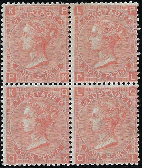 Great Britain 1865 4d dull vermillion Plate 7, SG93