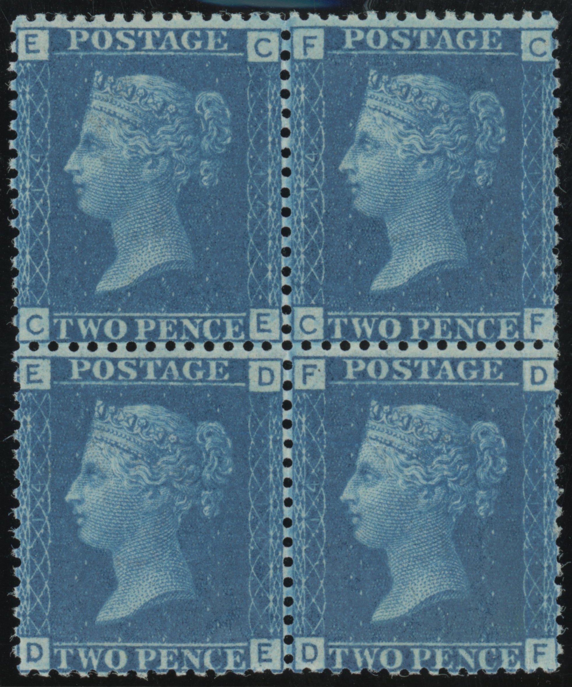 A superb unmounted mint with full original gum perfectly centred block of four lettered 'CE-DF'. In particular, benefits from stunning colour and gum.