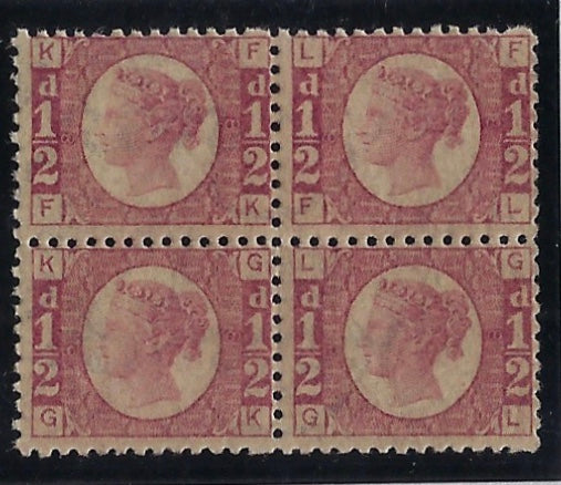 Very fine unmounted with full original gum block of four lettered FK-GL. Usual crazed and off white gum associated with this printing plate, nevertheless a very scarce multiple.