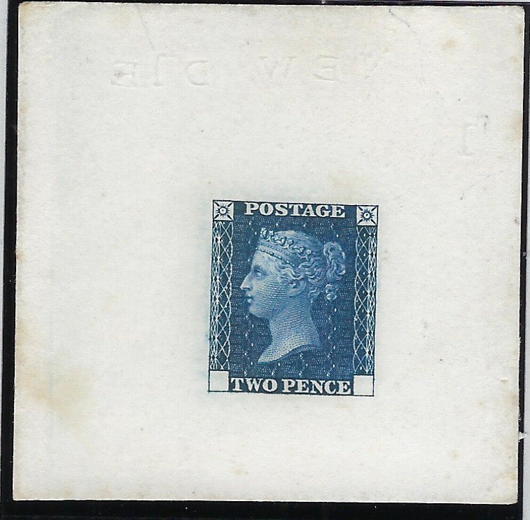 Very fine example printed in deep blue on thin white wove paper on card (60x60mm) with uninked "NEW DIE" and "1" reversed at top.
