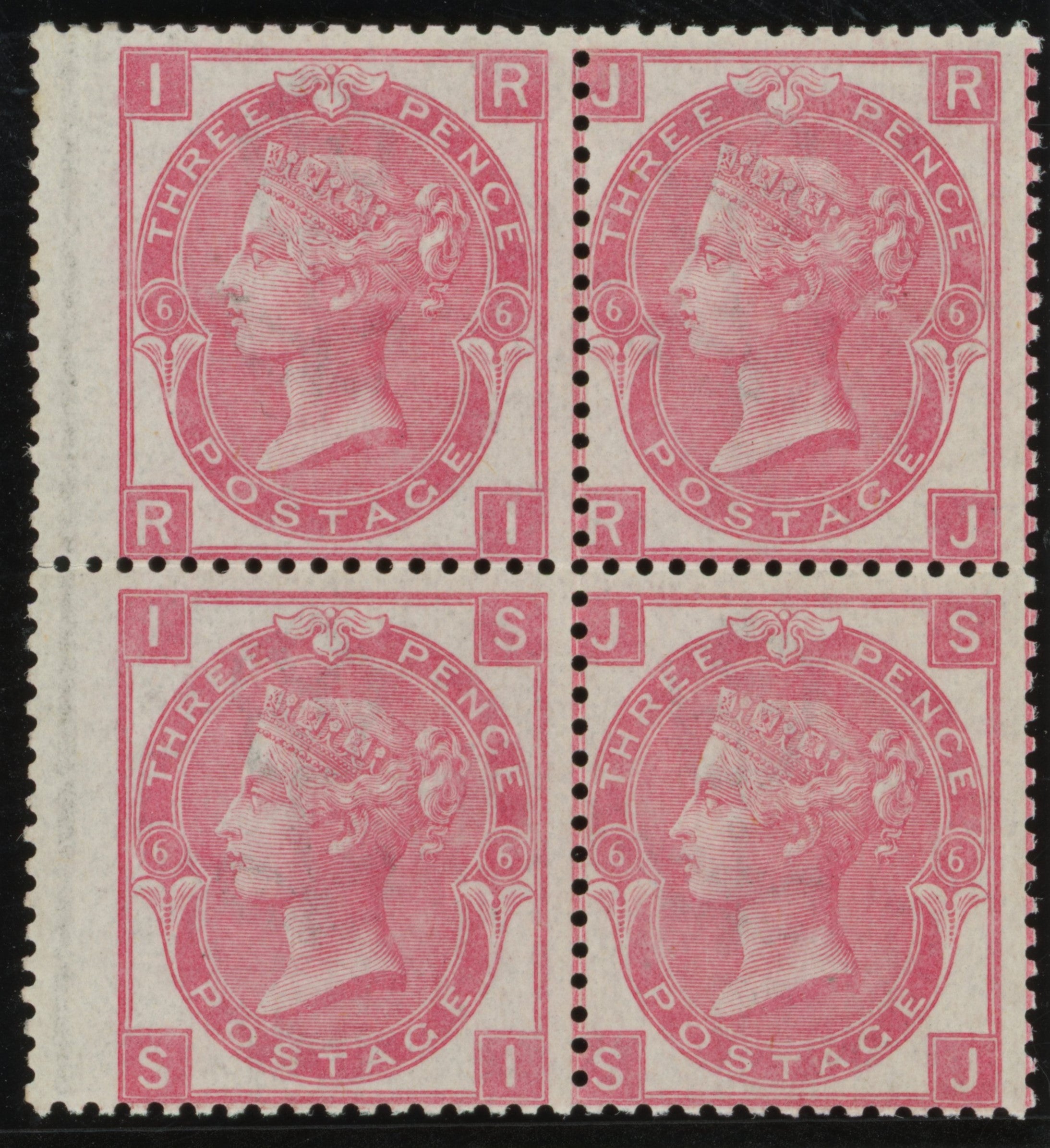 A very fine unmounted mint, full original gum, left hand wing margin block of four lettered 'RI-SJ'.