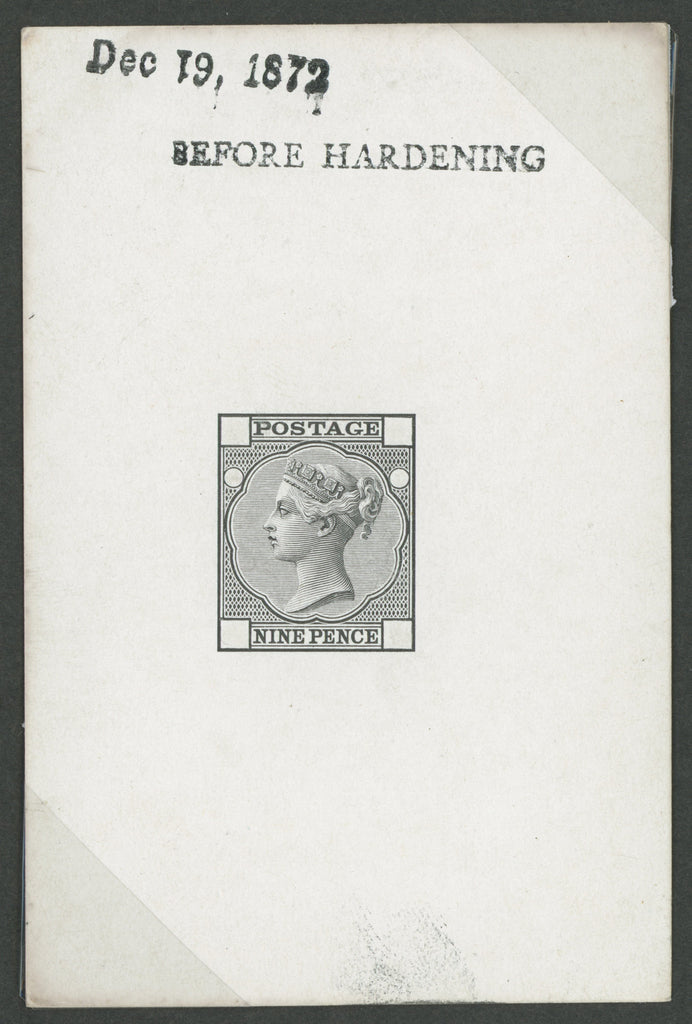 A very fine example printed in black on white glazed card (93 x 61mm) endorsed "BEFORE HARDENING" and dated "Dec 19, 1872".