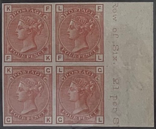 Great Britain 1876 4d Vermillion colour trial. SG152var PL15.