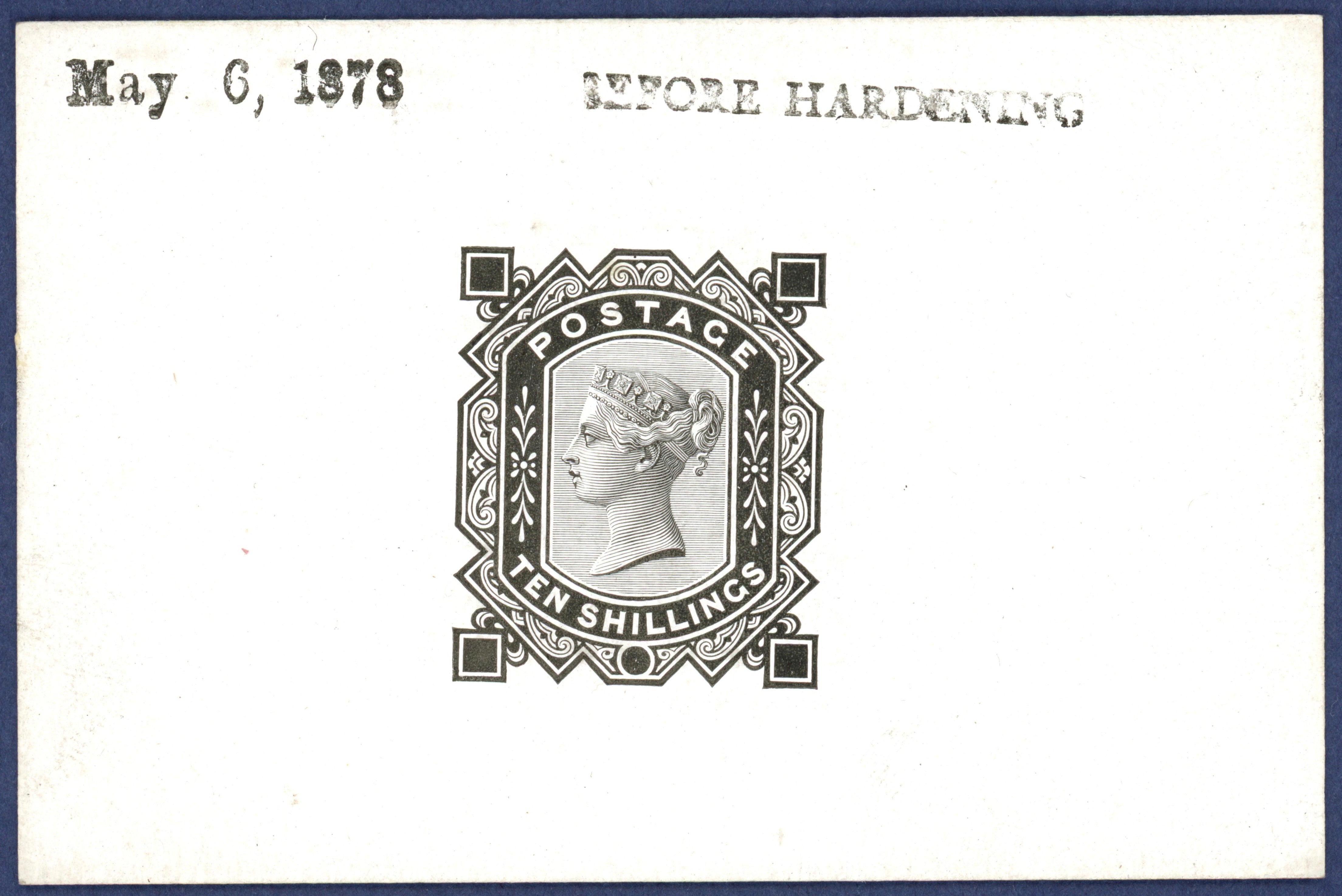 A very fine and fresh example printed in black on white glazed card (91x60mm), endorsed "BEFORE HARDENING" and dated "May 6 1878".