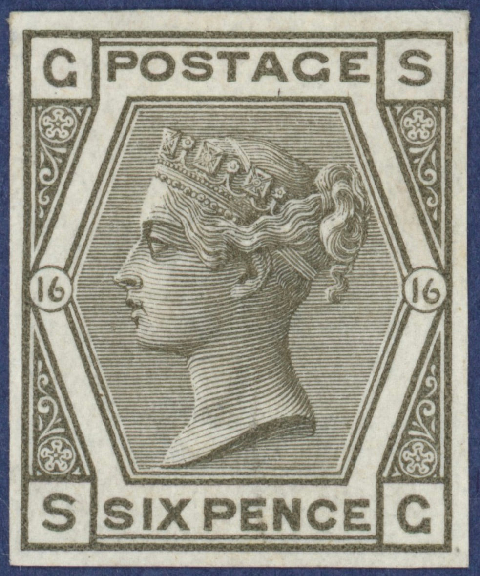 Great Britain 1878 6d grey Plate 16 imprimatur, SG147var