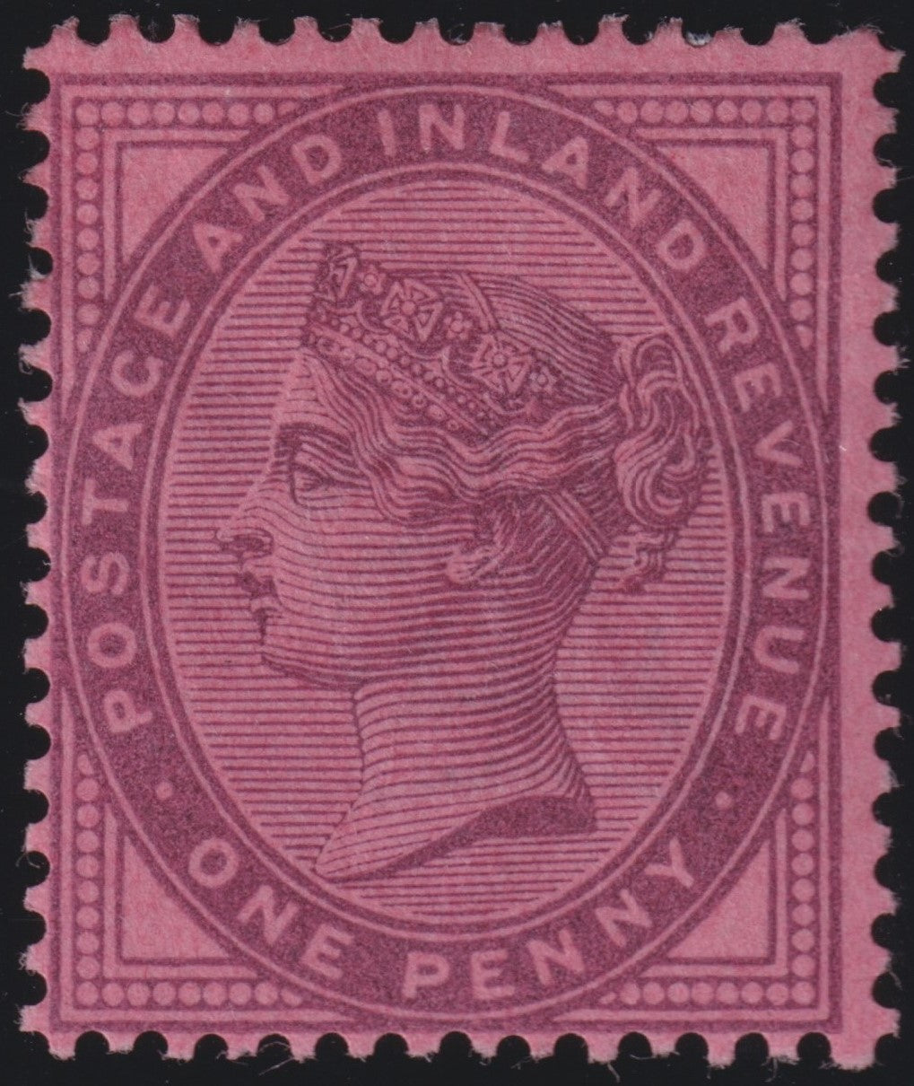 A very fine perforated example printed in lilac on rose-coloured, gummed, Crown watermarked paper.