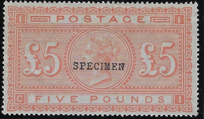 Great Britain 1882 £5 Orange Specimen (Blued paper), SG133.