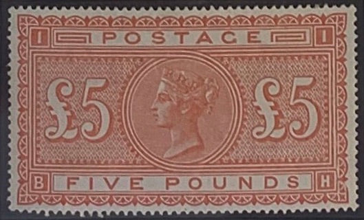 Great Britain 1882 £5 Orange Plate 1, white paper, SG137var.