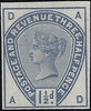 Great Britain 1883 1 1/2d Colour trial. SG188. Very fine unused o.g. imperforate example on crown watermarked paper lettered AD, printed by DLR in blue-grey. Very scarce, no more than two or three examples of each colour exist in private hands.