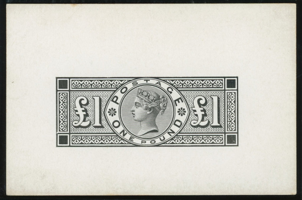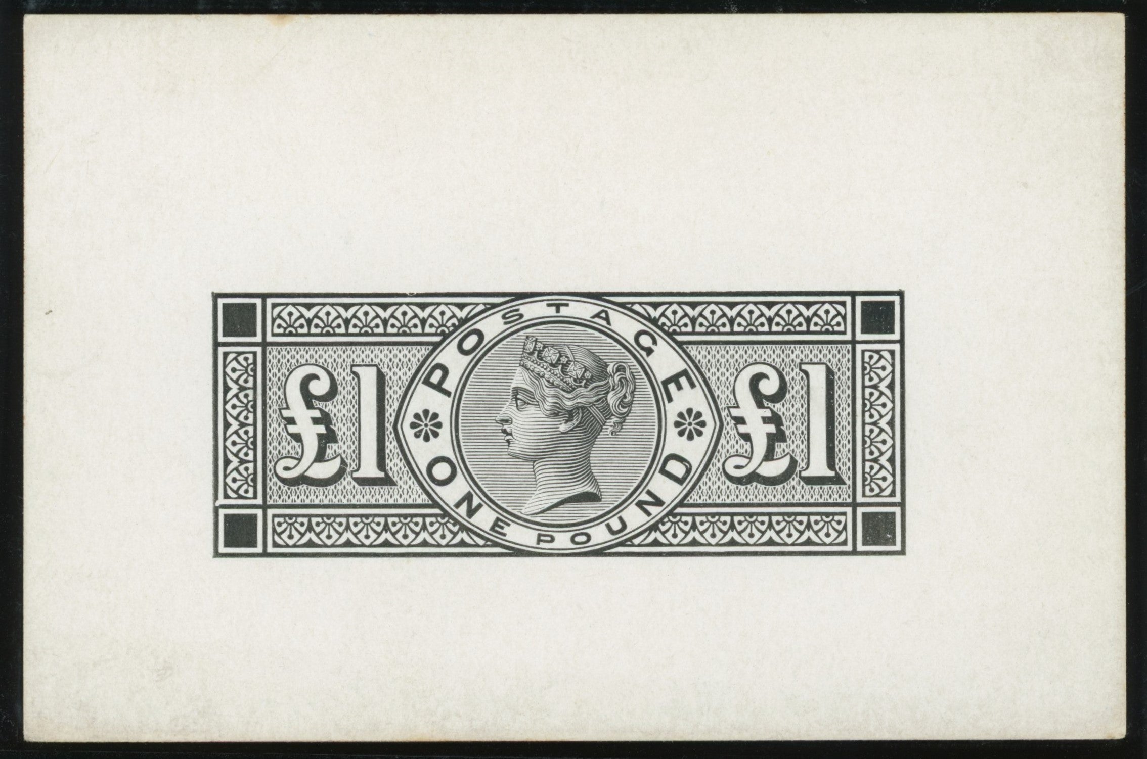 A scarce printer's die proof of the striking but controversial "Lone One Pound" Queen Victorian stamp issue.